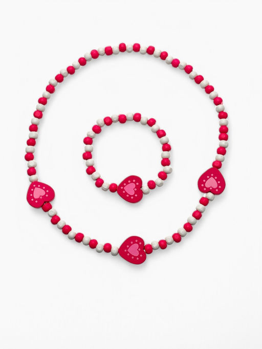 Набор детских украшений Выбражулька «Сердечки полоска», 2 предмета: колье, браслет d=6 см бело-розовый