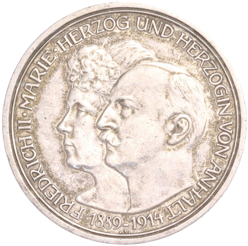 Монета 3 марки 1914 года Германия (Ангальт) 25 лет свадьбе Фридриха II и Марии Баденской