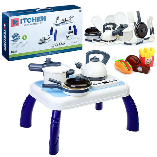 - плита (16.5х19.5х3.5 см.) - сенсорные кнопки, световые эффекты, звуки готовки, при включении играет детская песенка на английском языке, голосове сопровождение (иностранный язык).