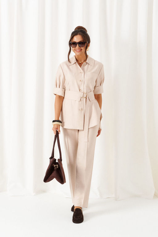 различных интерпретациях: от оверсайза до классики. Выполнен из смесового полотна с содержанием натуральных волокон льна и вискозы, предназначен для повседневного и выходного использования. Найдет применение в жаркую и прохладную летнюю погоду.