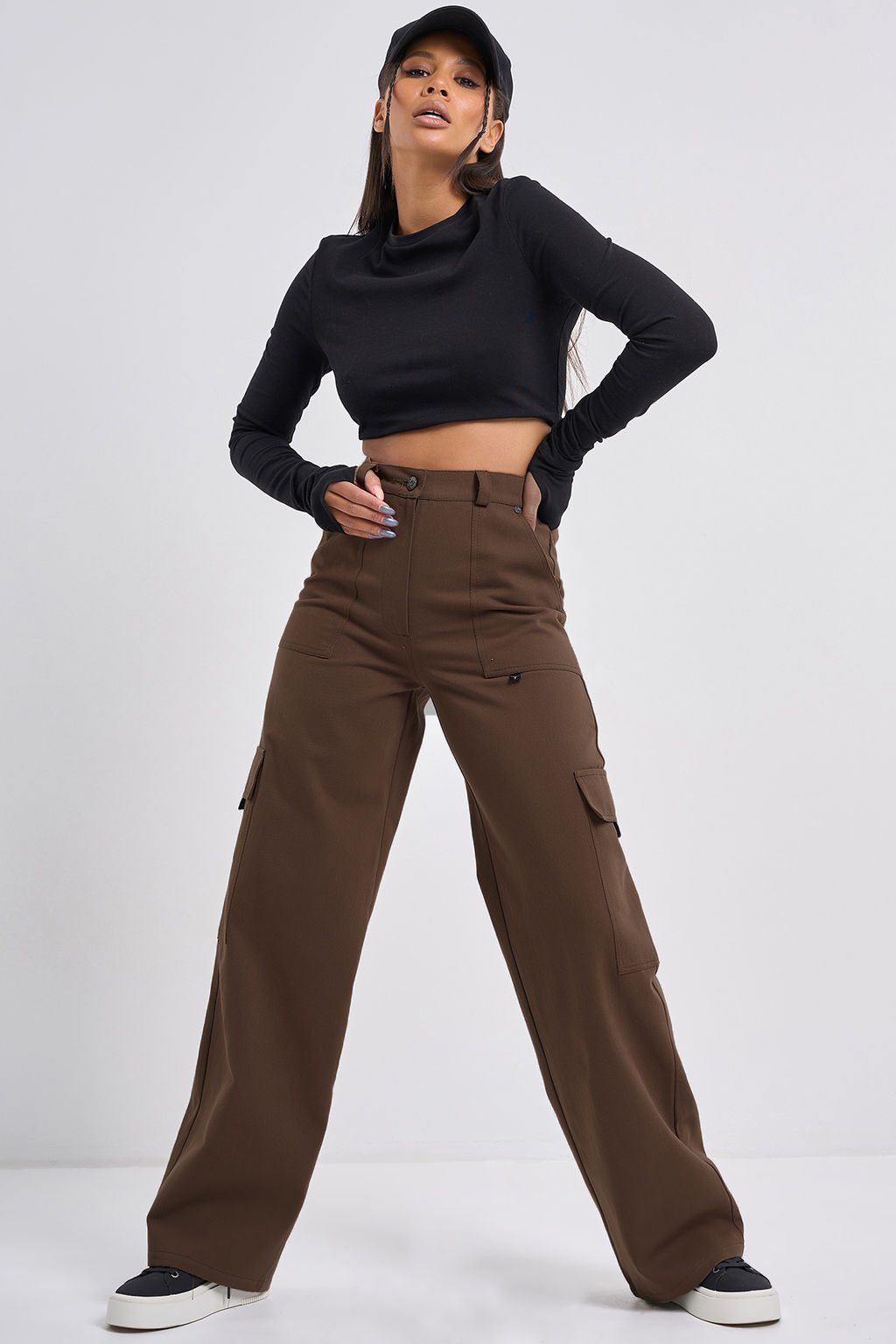 • Брюки карго прямые хлопковые коричневые