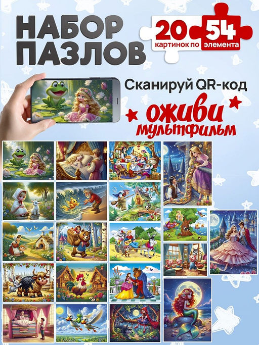 • Цена за 2 шт. Puzzle 54 элемента "Оживи мультфильм. Сказки №5" (П54-3500) по 20шт. в шоубоксе