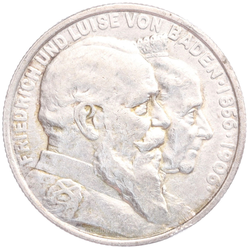 Монета 2 марки 1906 года Германия (Баден) 50 лет свадьбе Фридриха I и Луизы Прусской