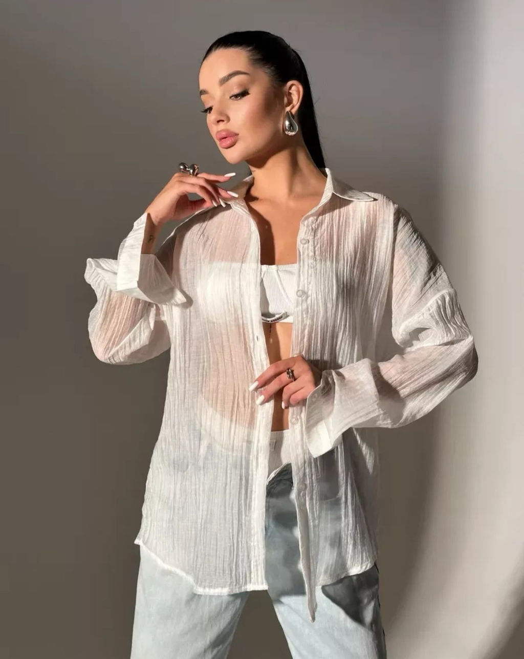 • K12452 Рубашка OVER SIZE БЕЛЫЙ