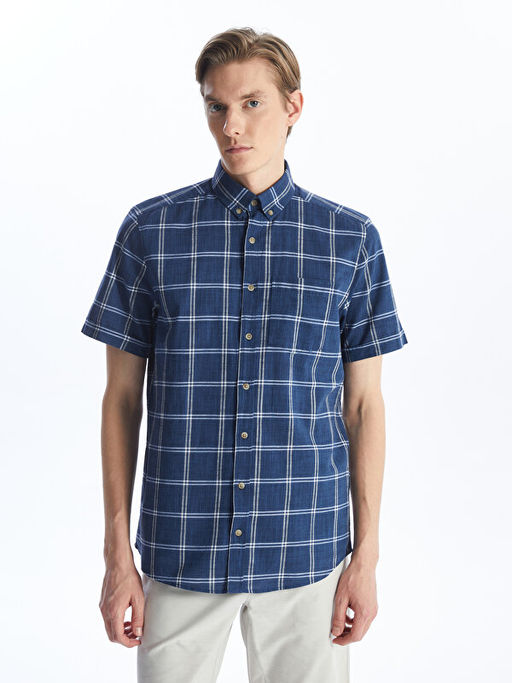 Regular Fit K?sa Kollu Ekose Poplin Erkek G?mlek