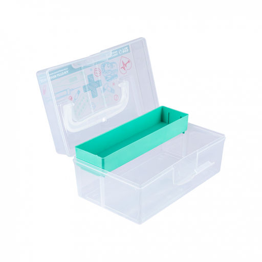 Аптечка полностью выполнена из прозрачного прочного пластика, позволяющего без труда рассмотреть ее содержимое.