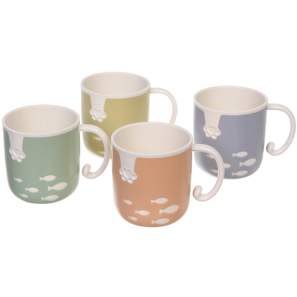 Цена за 3 шт. Кружка пластиковая 300мл "Котик рыболов", микс цветов