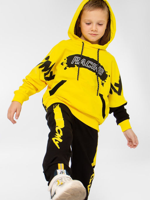 Спортивный костюм для мальчика из натурального хлопка - футера. Кофта с капюшоном и карманом-кенгуру. Брюки на широком эластичном поясе с кулиской, брючины на манжете.