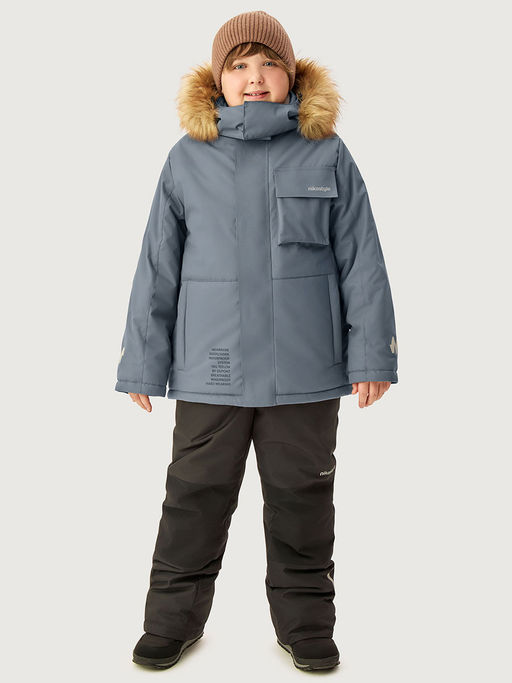 Описание товара Размер: 122-72, 128-72, 134-76, 140-80, 146-84 Сезон: ЗИМА Пол: Мальчик Категория товара: ПЛЮС САЙЗ Цвет: сталь/черный Мембранная одежда: Да Ткань верха: МЕМБРАНА BREATEX Teflon WR 5000/5000 (100% полиэстер) Подкладка: флис + п/э (100% полиэстер) Температурный режим: от 0С до -25 С Утеплитель: fiberlite 250гр Мех опушки: искусственный