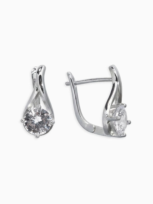 Серьги со стразами «Магия» бусинка в капле, белые в серебре