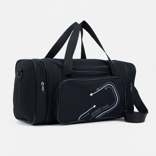 • Сумка дорожная на молнии, 3 наружных кармана, длинный ремень, цвет чёрный/серый
