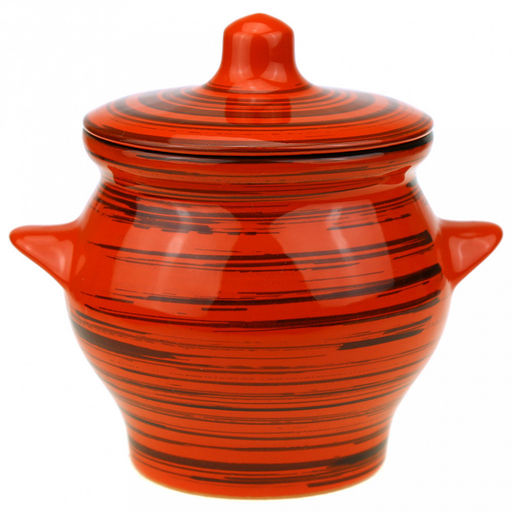 Горшок для жаркого керамический "№6" 0,65л, д12см "Оранжевая полоска", h12см (Россия)