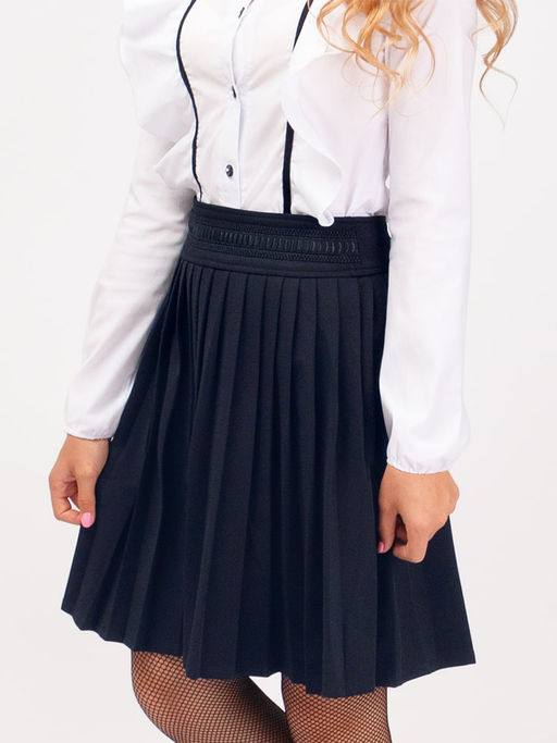 Юбка для девочки Соль&Перец силуэта трапеция, в складку, с ажурным декором на поясе. В пояс вшита резинка для регулировки обхвата талии. Износоустойчивый материал позволит надолго сохранить форму и привлекательный внешний вид изделия. Идеальный выбор для создания стильного, школьного образа.