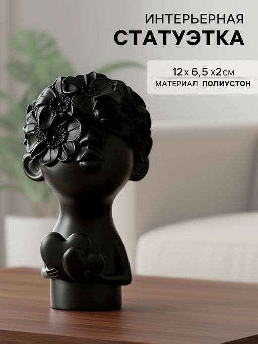 • Бюст полистоун Фигура: Человек с сердцем, чёрная, 12?6.5?22 см
