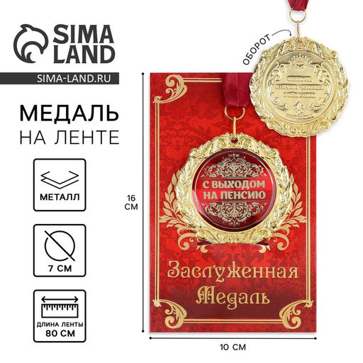 - диаметр медали 7 см.;- диаметр вкладыша 4,9 см.;- материал медали - металл;- материал наклейки - эпоксидная смола;- высота упаковки 16 см.;- длина упаковки 10 см.;- ширина упаковки 0,5 см.;- размер ленты 79 х 1,5 см.;- вес медали 46 гр.;- вес брутто 65 гр.. Для кого: Унисекс. Диаметр, мм: 70. Диаметр вкладыша, мм: 49. Вид упаковки: Открытка. Тематика праздника: Корпоратив. Тематика праздника: Выход на пенсию. Адресат: Без адресата. Наличие символики РФ: Нет. Наличие ленты: Да. Бесплатная доставка: Да. Наша разработка: Да. Размеры товара: 7/7/0.4.