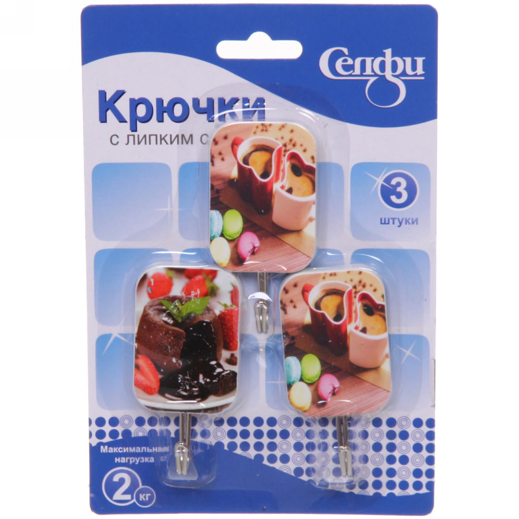 • Цена за 6 шт. Крючки в наборе 3шт на липком слое "ИДЕЯДОМА", форма прямоугольник, принт кофе, нагрузка 2кг