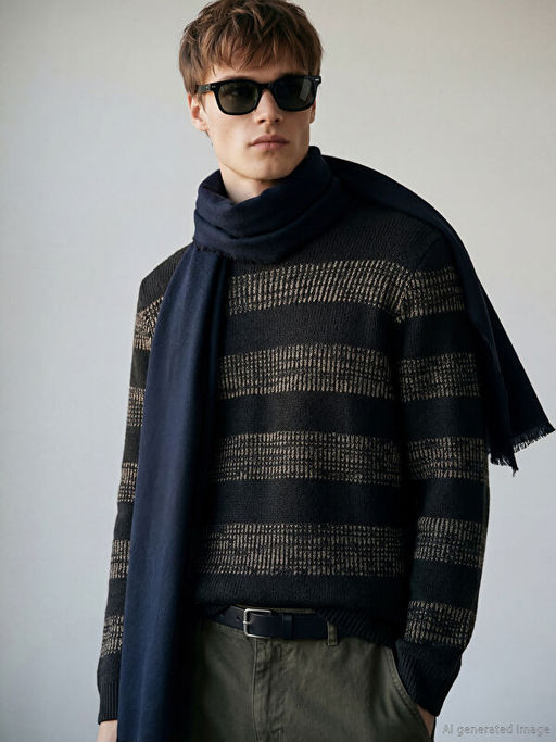 Bisiklet Yaka ?izgili Erkek Triko Kazak