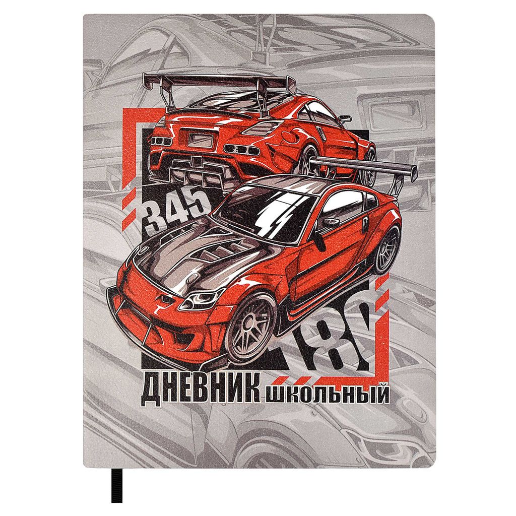Дневник школьный арт. 58912 / 15 ГОНКИ (кожзам: А5+; мягкий переплёт, материал обложки: искусственная кожа "Наппа"; декор: полноцветная печать; способ крепления блока: ниткошвейный; вн. блок: 48 л., белый офсет 80 г/м?, печать в одну краску, справочный материал: есть; отделка среза: окрашивание пантоном; одно ляссе; форзац: печать в одну краску; ПЭТ-пакет)