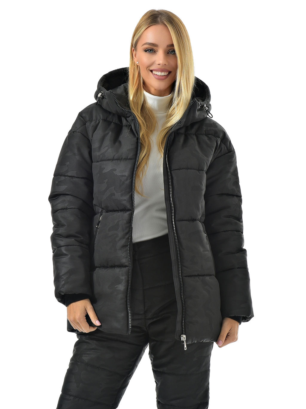 Одной из главных особенностей этой женской зимней куртки является использование плотной плащевой ткани с рисунком. Что это значит? Это значит, что утепленная куртка обладает высокой водостойкостью и ветрозащитой. Вы больше не будете бояться промокнуть под дождем или замерзнуть от холода. Стеганая куртка свободного силуэта из плащевой ткани создана специально для того, чтобы защитить вас от непогоды и сохранить комфорт в любых условиях. Есть два боковых кармана и потайной карман, все на молнии. Рукава снабжены эластичными манжетами для дополнительной защиты от холода. Камуфляжный принт дизайнерской работы, выполненный на этой модной куртке на синтепоне, подчеркнет вашу индивидуальность и придаст образу неповторимость. Каждое изделие создается с учетом последних модных тенденций, поэтому вы можете быть уверены, что ваш модный черный пуховик будет соответствовать самым актуальным трендам. Синтепон хетта плотностью 300 гр/кв.м будет согревать вас даже самой суровой зимой. Дутая куртка также оснащена капюшоном, который надежно защитит вас от сильного ветра и дождя. Российское производство с контролем качества на всех этапах. Плащевая ткань не маркая, легко очищается.