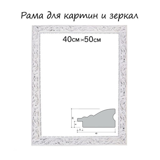 Рама для картин (зеркал) 40×50×4 см, дерево «Версаль», бело-серебристая