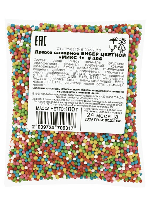 • Цена за 2 шт. Драже сахарное бисер цветной микс 100 г  # 404