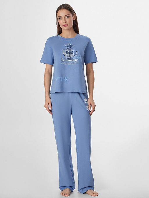 • Комплект домашний женский синий с надписью