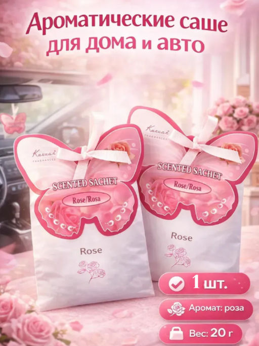 Подарите своему дому и гардеробу неповторимую свежесть с набором из двух аромасаше с нежным запахом роз. Эти небольшие, но очень эффективные ароматизаторы станут отличным решением для тех, кто ценит уют и свежесть в каждом уголке своей жизни. Поместите их в шкаф с бельём, гардеробную или рядом с одеждой и ваши вещи всегда будут наполняться приятным ароматом, который напоминает о цветущем саде и теплых весенних днях. Наши ароматизированные саше идеально впишутся не только в домашний интерьер, но и станут отличным освежителем для автомобиля и машины. Компактный комплект из двух штук позволяет использовать их одновременно или по отдельности, подстраиваясь под любые ваши нужды. Такие ароматические помощники подчеркнут стиль вашего пространства, создавая гармоничную атмосферу, полную свежести и легкости. Вы можете смело использовать наши аромасаше в туалете, ванной, возле кровати или в комоде. Благодаря приятной отдушке они легко убирают нежелательные запахи и наполняют воздух тонкими цветовыми нотами.