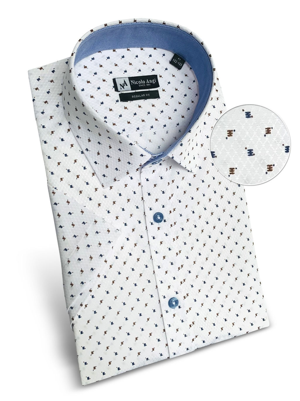 Бренд: Nicolo Angi Длина рукава рубашки: Короткий Карман: Без кармана Силуэт: Полуприталенный силуэт (regular fit) Состав: 80% хлопок, 20% полиэстер Стиль: Деловой Узор (рисунок): Принт Цвет: Белый