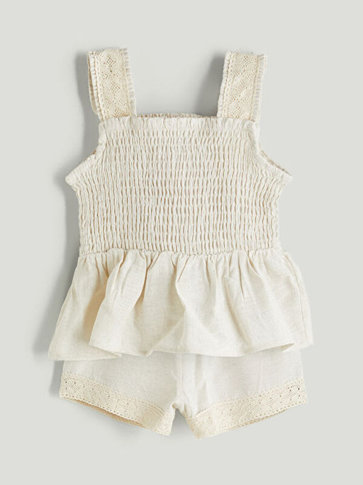 Kare Yaka K?z ?ocuk Bluz ve ?ort 2li