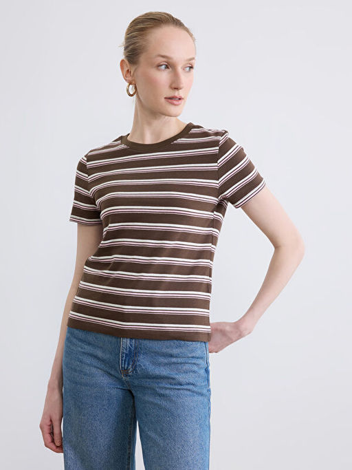 Bisiklet Yaka ?izgili Kad?n Ti??rt