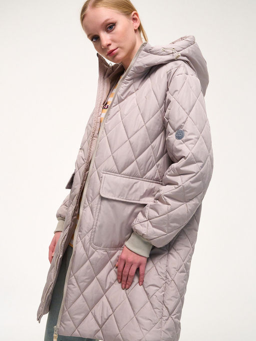 Утепленное демисезонное стеганое пальто свободного силуэта с втачным рукавом. Втачной капюшон, застегивающийся на кнопки, и воротник-стойка на трикотажной основе надежно защищают от ветра и снега. Край капюшона с кулисой, регулируемой шнуром-резинкой и стопорами. По низу рукава плотный трикотажный манжет также обеспечивает сохранение тепла. На левом рукаве светоотражающая нашивка с фирменным логотипом. Застежка центральная на молнию с ветрозащитной стеганой планкой. Пуллер застежки-молнии украшен фирменным логотипом. Накладные карманы снабжены верхним клапаном на липучках. Изделие украшено оригинальной диагональной стежкой. Вся наша продукция сертифицирована и соответствует высочайшим стандартам качества, наша компания является участником программы "Бережливое производство" Состав:100% полиэстер