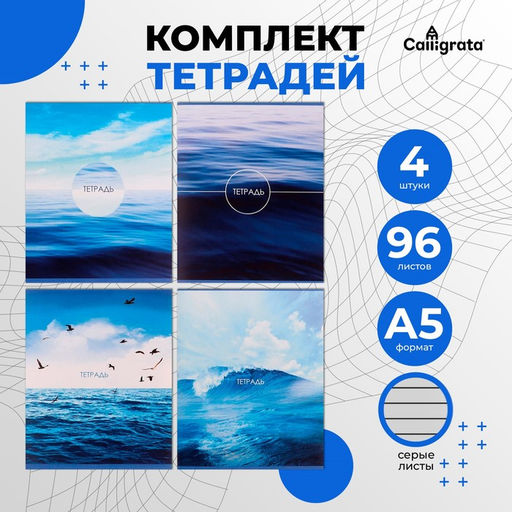 • Комплект тетрадей из 4 штук, 96 листов в линию Calligrata «Морской пейзаж», обложка мелованный картон, блок №2, белизна 75% (серые листы)
