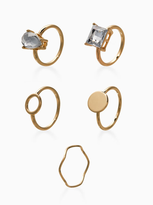 • Набор колец 5 шт "Новый стиль" кристалл, размер МИКС, цвет белый в золоте