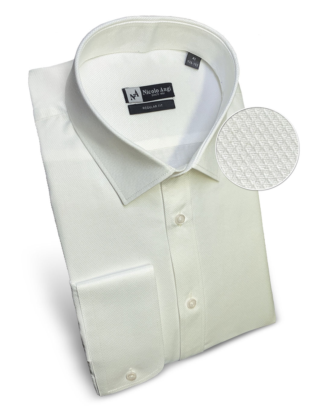 Классическая рубашка прямого кроя цвета "шампань" с длинным рукавом. Ткань с выработкой. Манжет универсальный под запонку или пуговицу. Подходит для деловых встреч и торжественных случаев.