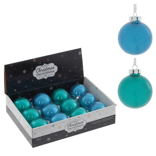 Набор шаров для елки в шоу-боксе. Эти новогодние шары нежно голубого цвета непременно порадуют вас своим изяществом и прекрасно дополнят праздничный наряд лесной красавицы.