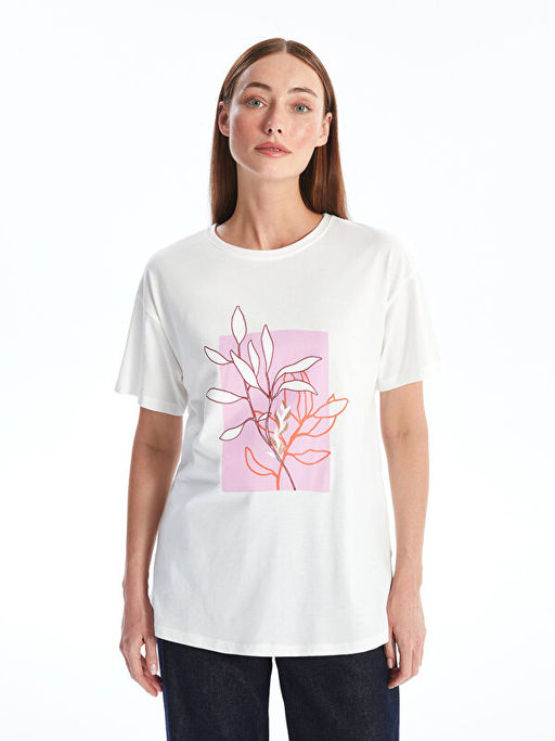 Bisiklet Yaka Bask?l? K?sa Kollu Kad?n Ti??rt