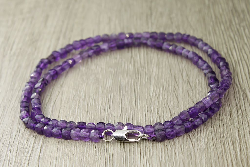 • Аметист кубики гранёные 3.5мм, "Окта" бусы 47см