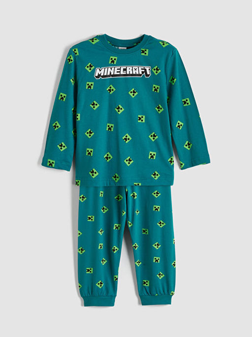 Bisiklet Yaka Minecraft Bask?l? Erkek ?ocuk Pijama Tak?m?