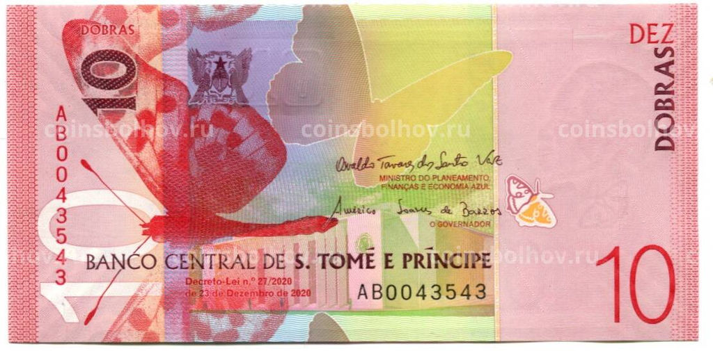 • Банкнота 10 добр 2020 года Сан-Томе и Принсипи