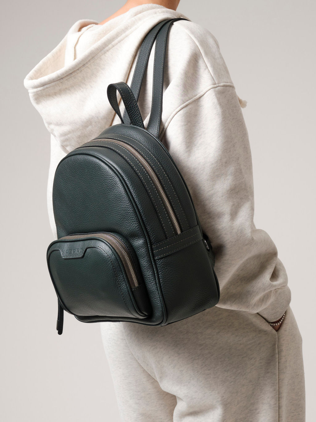 Женский кожаный рюкзак из натуральной кожи Azaro арт. 30852 дремучий лес идеальный аксессуар для стильных и активных женщин. Детали: натуральная кожа, регулируемые лямки, 1 внешний карман на молнии, 1 внутреннее отделение на хлопковой подкладке, 1 закрытый каман на молнии в рамке из натуральной кожи с логотипом бренда, 2 открытых боковых кармана, пуллеры из натуральной кожи с декоративной фурнитурой. Женский кожаный рюкзак Azaro 30852 сочетает в себе элегантный дизайн и практичность, что делает его незаменимым спутником в повседневной жизни. Мягкая текстура натуральной зернистой кожи приятно ощущается на ощупь, а изысканный внешний вид добавляет образу шика и утонченности. Комфорт и функциональность ключевые особенности этого кожаного рюкзака. Удобные регулируемые лямки позволяют настроить рюкзак под любую фигуру, а вместительное основное отделение достаточно для хранения всех необходимых вещей. Внутри предусмотрены карманы для мелочей, что упрощает организацию пространства. Рюкзак идеально подходит как для прогулок по городу, так и для путешествий. Это отличный выбор для тех, кто ценит качество, стиль и комфорт в каждом дне. -- Характеристики -- Цвет: дремучий лес Материал: Натуральная кожа Бренд: Azaro Тип: Рюкзак Страна-изготовитель: Россия Высота, см: 32 Ширина, см: 27 Глубина, см: 13 Материал подкладки: Хлопок Количество внутренних отделений: 1 Количество внешних карманов, шт: 1 Тип застежки: Молния Формат А4: не вмещает Вес товара, г: 840 Озон (наличие): нет Пол: женская коллекция Группа товара: Сумки