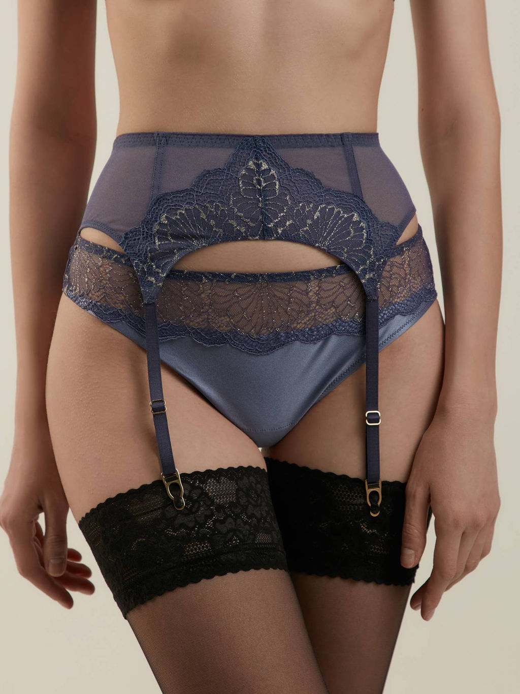 Пояс для чулок Satin выполнен из тончайшего эластичного кружева с металлизированной нитью и