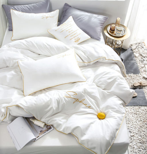 КПБ Mency Winni однотонный с вышивкой на резинке по кругу MENWOV019 Семейный