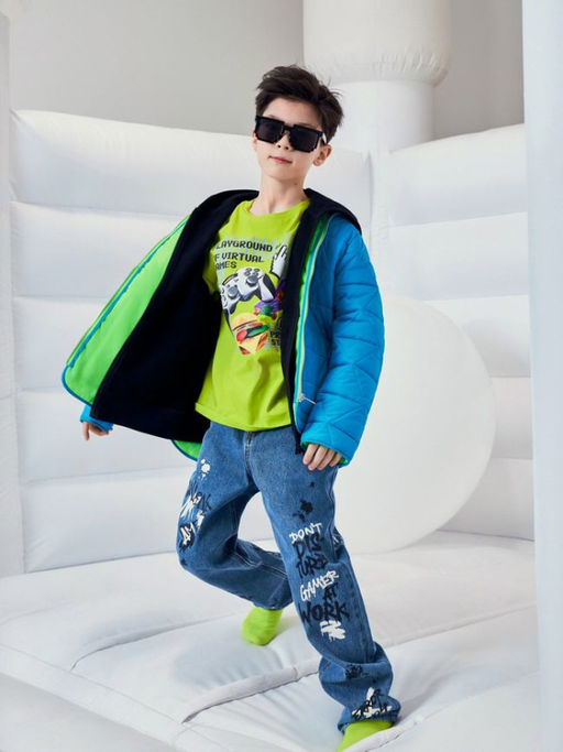 Прямые джинсы для мальчика модели Regular fit, выполненные из хлопкового денима, отличаются традиционным свободным силуэтом и удобной посадкой. Модель с поясом, регулируемым на внутреннюю эластичную ленту, можно подогнать по полноте на любой тип фигуры. Джинсы с пятью карманами: двумя боковыми, маленьким накладным для мелочи и двумя накладными задними. Застежка на молниюи пуговицу. Для размеров 98-128 используется кнопка, для размеров 134-164-пуговица. Джинсы покрыты принтом в стиле граффити с текстовыми надписями, благодаря чему легко помогут создать расслабленные образы с футболками и яркой ветровкой.­