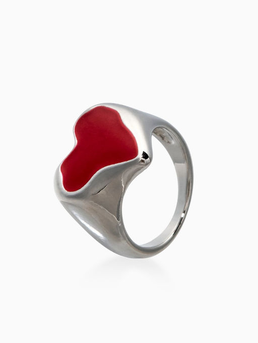 • Кольцо "Сердце" корейский стиль, размер 17, цвет бордовый в серебре