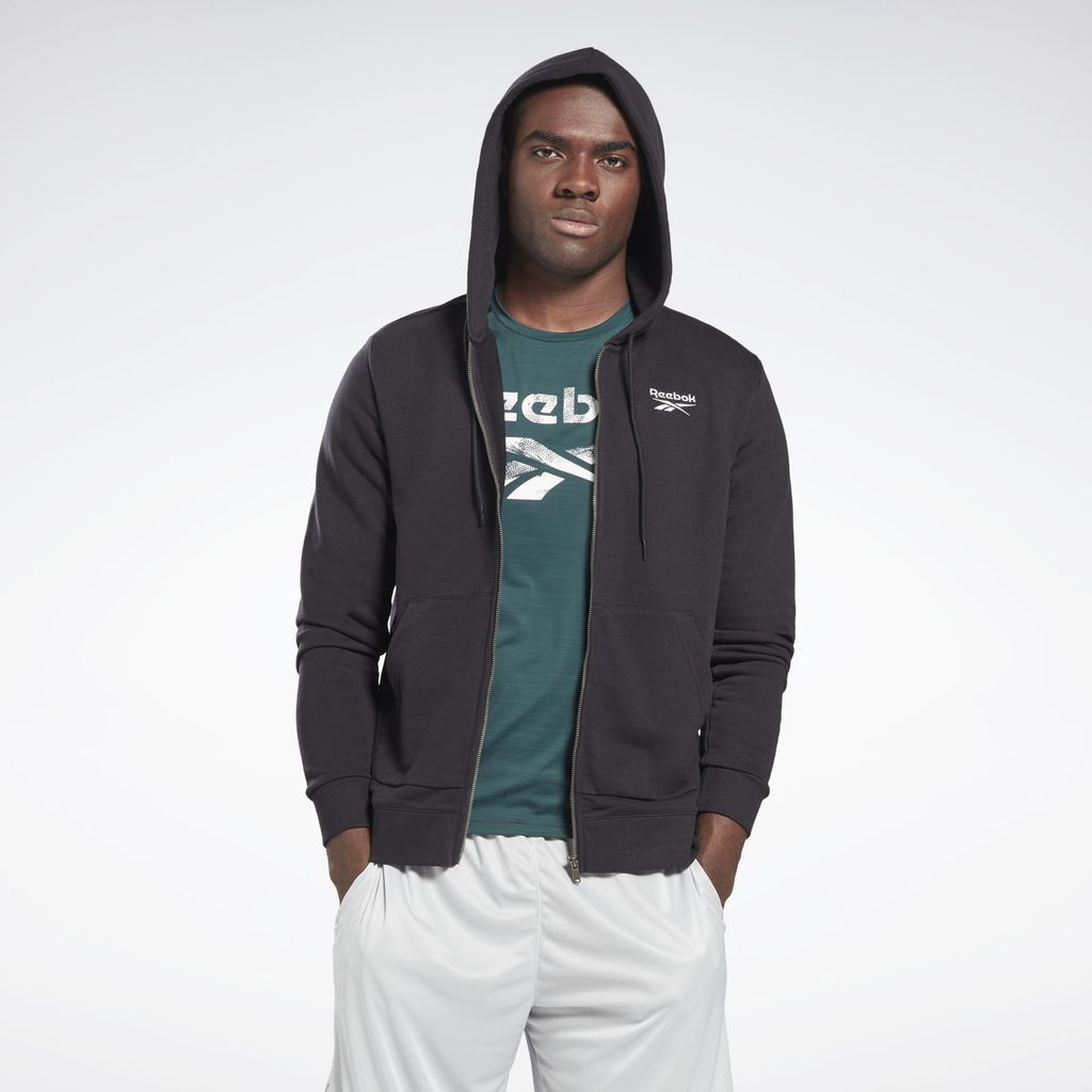 Бегай по лестнице в парке и качай руки как чемпион. Или смотри дома фильм про спорт. Мужская худи для тренировок будет с тобой, какими бы ни были твои планы на день. Мягкий трикотажный материал приятен к коже. Логотип Reebok подчеркивает любовь к спорту.