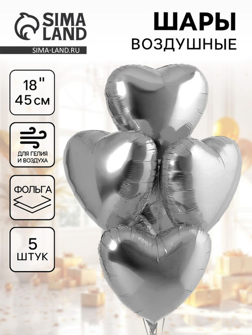 Воздушные шары фольгированные 18" Сердце, 5 шт.