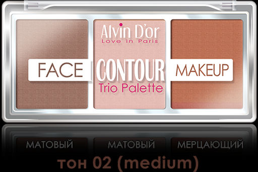 Alvin Dor FC-12 Палетка 3х1 контуринг+хайлайтер+румяна тон 02 medium, Hd hollywod