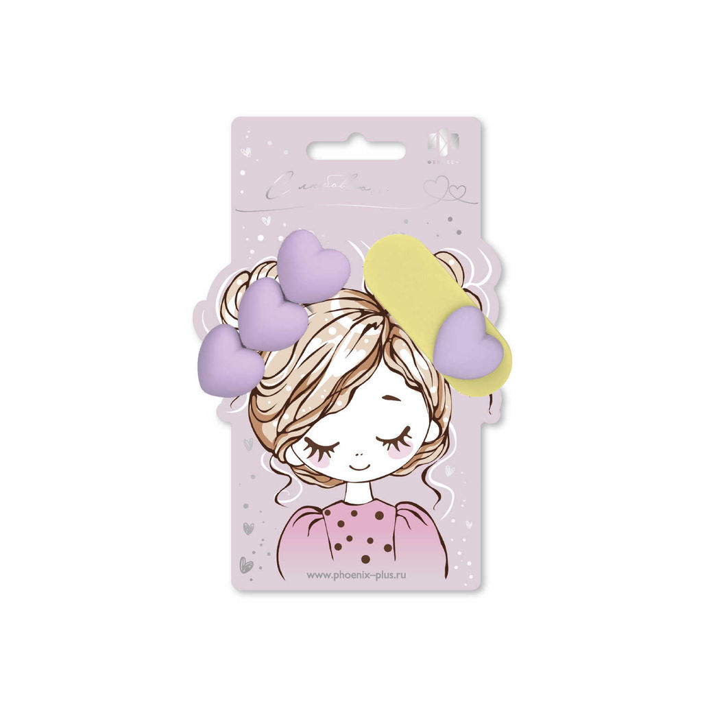 Набор заколок для волос клик-клак, зажим, софт-тач, арт. 71753 / 10 СЕРДЕЧКИ (в наборе: 2шт., 6,4; 6,7 см, черный металл, поликарбонат, полиэфирная смола, цвет: лимонно-жёлтый, сиреневый, подложка из мелованного картона + ПЭТ-пакет с европодвесом)