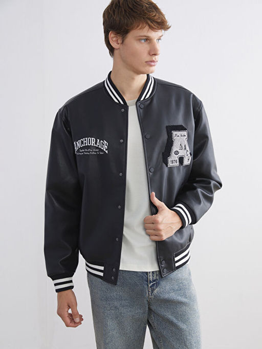 Kolej Yaka Nak??l? Erkek Deri G?r?n?ml? Ceket