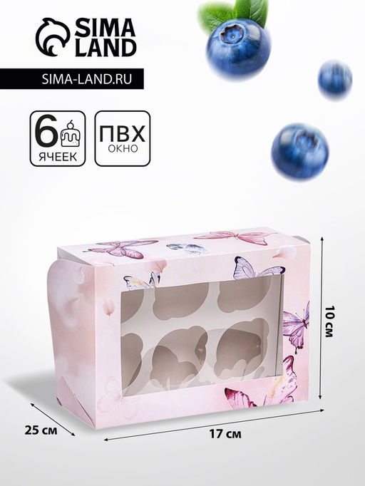 Коробочка для капкейков - это отличный вариант оригинально преподнести сладкий подарок знакомым, друзьям, близким. Благодаря прозрачному окошку получатель сразу может оценить аккуратный и эстетический вид кондитерского изделия.Преимущества:- термостойкость;- устойчивость к влаге и жиру;- защищает товар при транспортировке на дальние расстояния. Вид упаковки: Для капкейков. Форма: Прямоугольная. Плотность, г/м?: 280. Длина, см: 25. Ширина, см: 17. Высота, см: 10. Вместимость, шт.: 6. Тематика: Бабочки. Тематика праздника: 8 Марта. Наша разработка: Да.